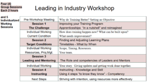Leading in Industry – Training and Apprenticeship Reimagined includes virtual group (dates – November 4, 11, 18 and December 9) and individual (to be scheduled based on your availability) sessions. With support to work on your specific objective, program and practices, topic areas will include:
