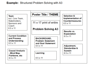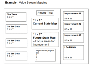 Poster Session/Networking: Teams display and discuss their use of Continuous Improvement and Innovation methods to address a problem or strive for a future state in their workplace. Examples of past projects include meeting a technical or business challenge with Structured Problem Solving, gaining more capacity, cash flow or customers with Value Stream Mapping, sharing know-how and getting consistent results with Standard Work, Improving engagement and individual development toward organizational goals with Strategy Deployment, reducing variation and controlling costs with Six Sigma, etc. We suggest that you bring at least two (2) people from your team so you can take turns discussing your poster and walking around to talk with other teams about their projects. When registering for this event, please note in the Comments field the name or theme of your poster. It doesn’t need to be formal or fancy; choose from the examples below or create your own! And feel free to make it fun!